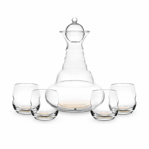Set Carafe Fleur de Vie avec 4 verres Mythos Or 23.8 Carrats