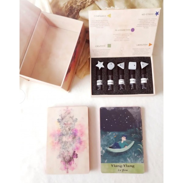 Bien plus qu'un simple jeu de cartes, cet oracle multisensoriel vous invite à vivre une expérience complète, où l'intuition passe autant par le ressenti que par les mots, les images et les senteurs.